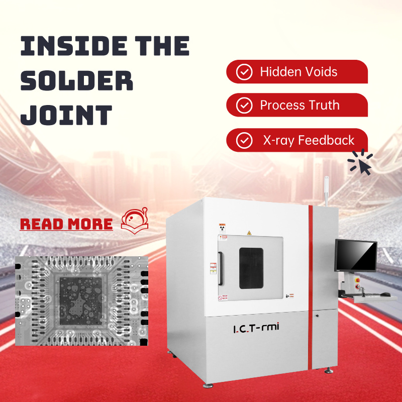 인라인은 대용량 합격/실패 및 기본 측정을 처리합니다. 오프라인은 더 심층적인 진단을 제공합니다. 배경: 속도와 해상도의 균형이 존재합니다. 원리: 인라인 시스템은 실시간 데이터를 위해 라인에 통합되지만 근본 원인 패턴 인식에 필요한 기울기/경사 보기와 오프라인 장치의 더 높은 배율이 부족합니다. 예: 생산에서는 추세 모니터링 및 경고를 위해 인라인을 사용합니다. 엔지니어링팀은 상세한 보이드 매핑 및 상관 관계 연구를 위해 샘플을 I.C.T-7900과 같은 오프라인 스테이션으로 가져옵니다.